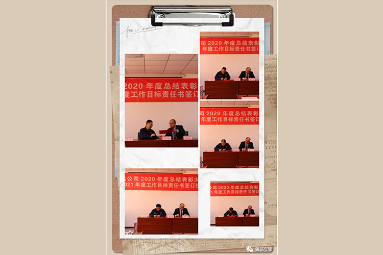 公司總經理苗翠波分別與山東駿馳機械科技有限公司總經理陳立、銷售管理中心總監李繼文、技術研發中心總監王汝峰、生產管理中心總監汪有國、行政管理中心總監張德彥分別簽訂2021年度工作目標責任書。