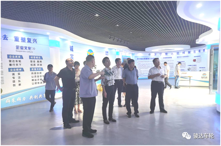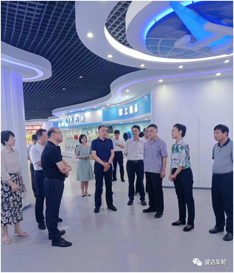 段主席一行首先參觀了公司展廳,聽取了駿達公司的企業榮譽、企業文化核心價值體系、公司發展歷程、業務板塊布局、核心產品技術、專利成果、戰略規劃等方面的介紹,詳細了解了車輪精品、軍工車輪等關鍵技術,并對駿達價值觀引領、創新驅動企業發展的做法和取得的成績給予充分肯定。